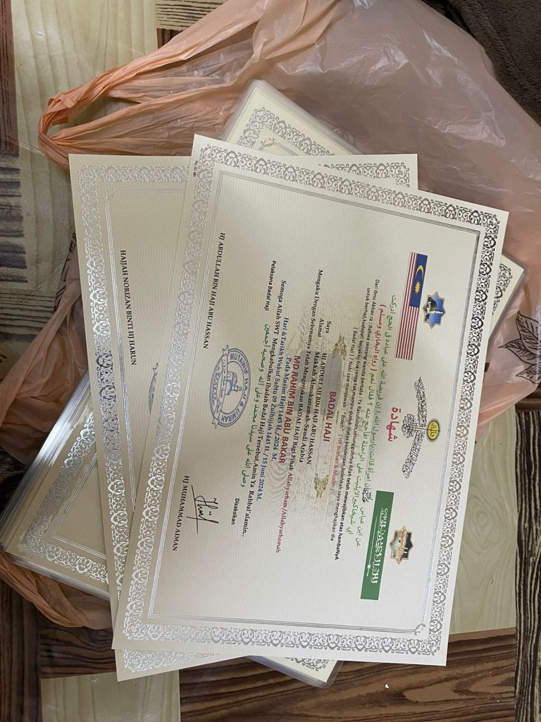 Sijil Badal Haji dan cenderhati telah dihantar terus kepada alamat waris, alhamdulillah.